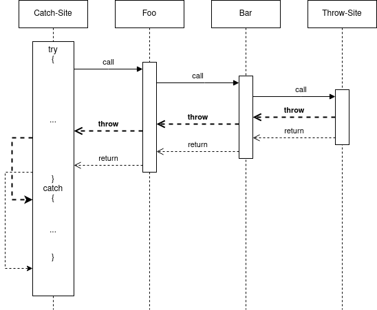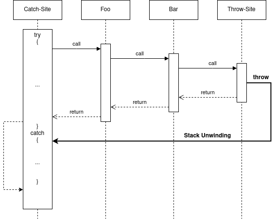 Therefore the stack must be unwound in some way until the the stackframe of the catch site